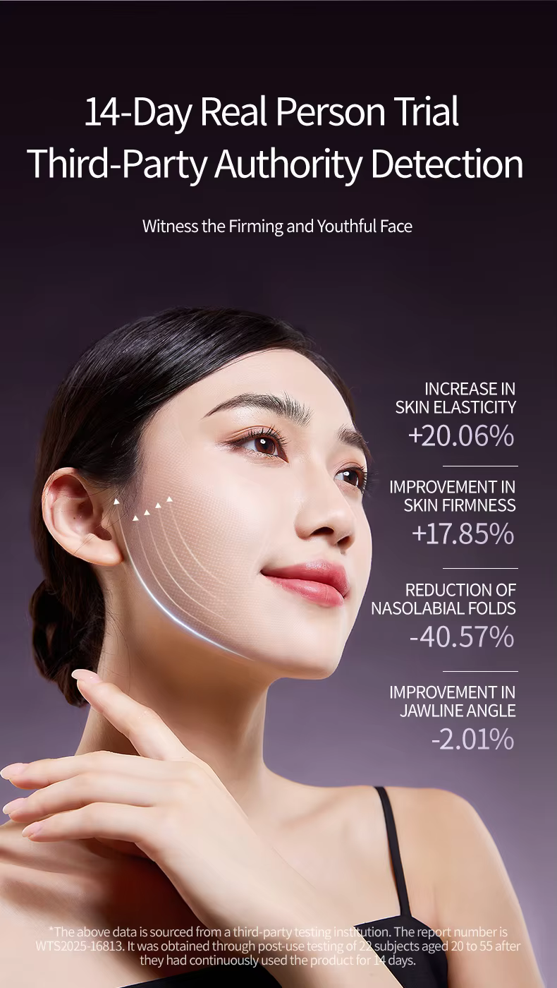 【8 EMS Electrodes | 9 Adjustable Intensity Levels】 Eight EMS electrode pads precisely target the jawline and facial contours. With 9 customizable intensity levels, enjoy a personalized V-face shaping experience—from gentle toning to deep muscle workout.